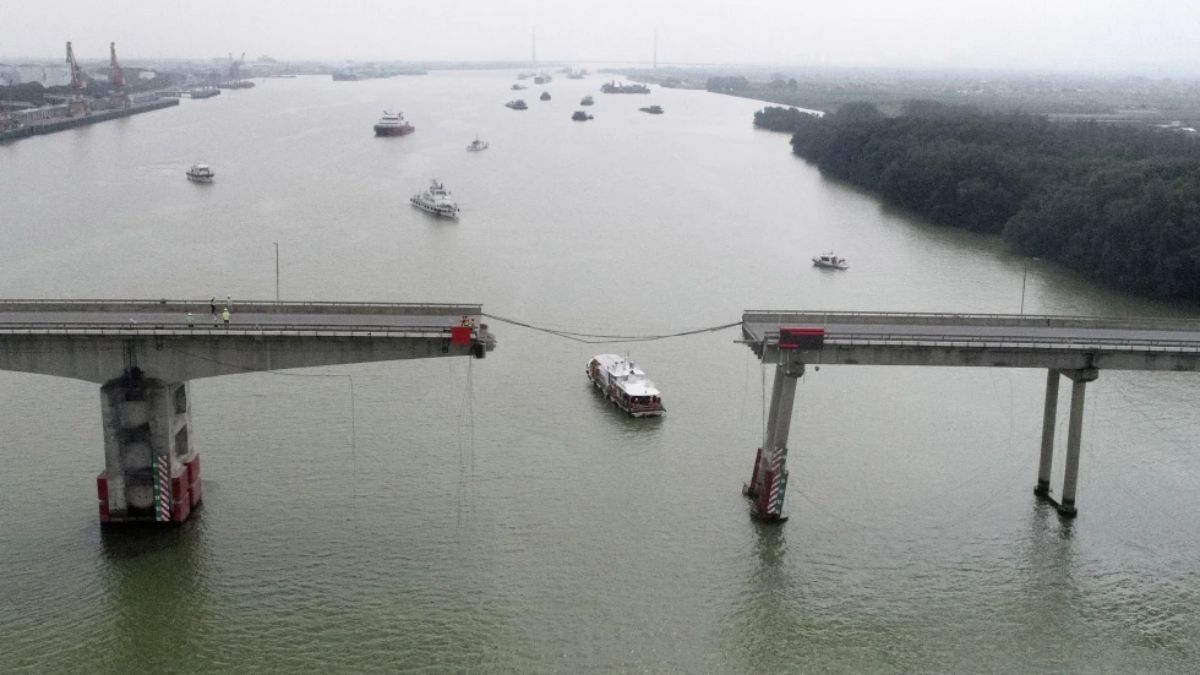 Container ship collides with bridge in Guangzhou China 2 people died/चीन के गुआंगझोऊ में पुल से टकराया कंटेनर जहाज, हादसे में 2 लोगों की मौत